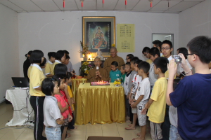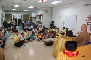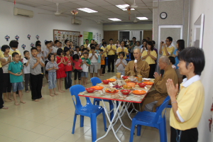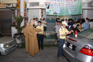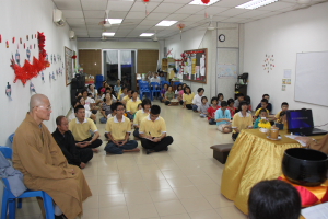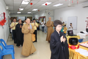 在今年的庆典,本苑很荣幸邀请到檀香寺的男监院尊敬的真如法师及真智法师的莅临。在傍晚7点25分,司仪为大众简介庆典的流程。 庆典于7点30分正式开始,恭请真如法师为中尊带领大众齐诵“阿弥陀佛”圣号与止静。虽说此次的庆典亦有在外的公众人士参与,不过彼此对于佛法的崇敬之心,也无你我之分,大伙都在一片庄严与融洽的气氛中,一声一句一心地齐诵“阿弥陀佛”圣号。