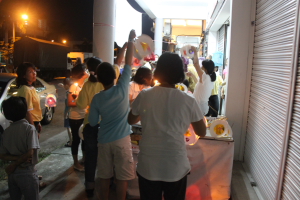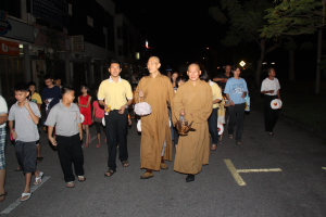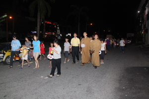 8点50分进入提灯笼的节目,它也是小菩萨们最开心的时刻。小菩萨们手里提着于上个星期在佛学班之时亲手制作的灯笼,并在真如法师及真智法师的带领下,一声佛号一个脚步地漫步在禅苑外的幽暗街道上。点点的灯光在黑夜里显得格外地明亮,其就如佛法为五浊恶世的众生带来光明般,是那么地耀眼,那么地珍贵。