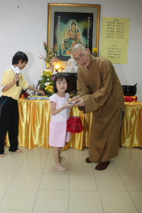 提灯笼游行结束后,真如法师带领大众做总回向,当然接下来的节目必是少不了享用诸位同仁报效的美食佳肴。期间,司仪也为大众公布获奖名单,并由真如法师与真智法师颁发奖品。