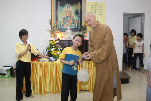 真如法师在结束之前,以往年唯悟法师的话来勉励大众:“菩萨们,今天是中秋节,传统家庭团圆的日子。健康家庭是健康社会的基础。家庭病了社会也跟着病。在家佛弟子要把家照顾好。中国传统出家弟子以僧团为家。僧团的和合是大家共同的责任。僧团病了佛教也跟着病。让我们一起建立一个健康的出家僧团和在家僧团/和合团体。” 并祝福大家:中秋快樂,福慧双修,心清安祥。