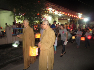 余兴节目表演完毕,在师父的带领下,大家浩浩荡荡的边念佛号边提灯笼去了。提灯笼游行回到佛殿后,今年的“中秋团圆共修会”在师父带领大众回向后圆满结束。感谢筹委会的积极筹备和信众的踊跃参与,祝福大家福慧双修,心清安祥。阿弥陀佛。