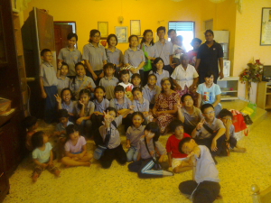 早上十点,大家开始集合再步行到不远处的孤儿、无依靠者、残障人士之家(TRUE LIGHT VISION CENTRE)。首先拜访的是孤儿的住处,是一间单层独立式房子,设备完善,有宽阔的草地让孩子玩乐。负责人说该中心目前共收容了16位孤儿,即5位华裔及11位印裔孩童,该中心一概不接受外界人士的领养。由于当天孩子们都有上课,只剩下几位较年幼的在家,但也蛮热情地与小菩萨们交流。拍了一张大合照后,负责人便带领我们到无依靠者及残障人士的住处,在那儿逗留了一会儿,小菩萨们都发心捐助该中心。