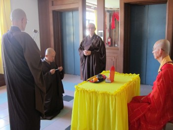 踏入2013年一月中旬,檀香寺仝人在上周末(19/1/2013,农历十二月初八),刚举办过〝释迦佛成道日〞庆典,亦与信众们共庆〝腊八节〞。本周六(26/1/2013,农历十二月十五),当大家开始张灯挂彩迎接农历新年的到来时,寺里再捎来一大喜讯──庄智灯居士今早将剃度出家的好消息!