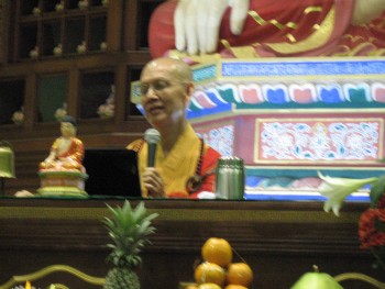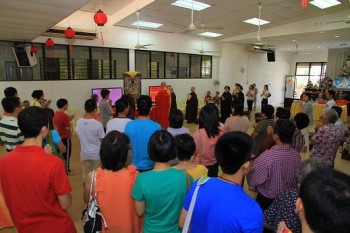 和以往一样,团圆晚宴主要宴请常住法师、檀香基金会委员、荣董、檀香属下各单位的职员和义工、佛友齐聚一堂共同享用由本寺素餐馆准备的美味佳肴,同时住持和尚━━唯悟法师也为大家开示,过后我们恭请师父颁发职员服务奖以及各单位呈献节目。