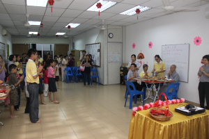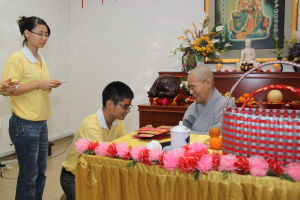 开示于7点50分结束后,就进入大众向法师拜年的环节。诸位菩萨有秩序地,有礼貌地一一向法师拜年,而法师也不忘在新的一年里祝福大众。如此,大众在一团和乐的气氛下结束了拜年环节。之后,法师带领大众回向此次举办团拜的殊胜功德。