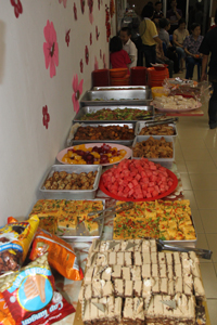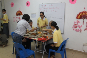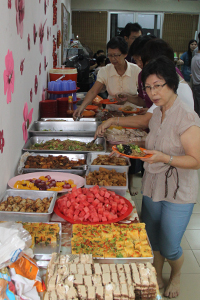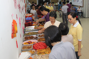 回向完毕后,法师与大众开始享用晚餐。直到9点10分,法师才与大众拜别,人潮也在此后逐渐离去,而诸位发心的菩萨亦在殿后为今夜之团拜做收拾工作。