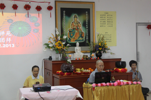 2013年2月24日(星期日),因一切因缘成熟,大山脚檀香禅苑于元宵节月圆夜之7时举办新春大团拜。本苑荣幸邀请到尊敬的上真下信法师莅临现场与大家拜年。
