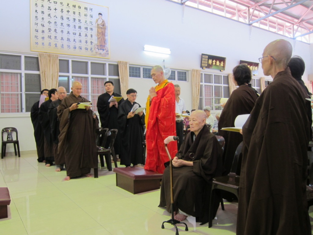 真如法师开示完毕后,大众出班享用茶点,然后继续共诵“第二系念”和“第三系念”。法会在电视屏幕上出现熊熊烈火的照耀,以及西方三圣前来接引的影像中划下句点。