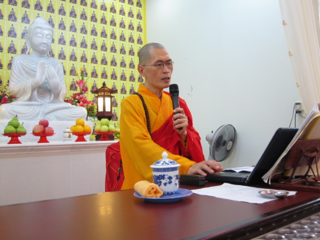 诵毕三时系念中的“第一系念”后,真如法师为信众们慈悲开示。开示分两个部分。第一部分为盂兰盆的真义。“盂兰盆”(ullambana)是梵語,意思是「救倒悬」,“倒”转过去,“悬”吊起來,是指在「饿鬼道」众生所受的苦,好像头脚倒转地吊起來,剧烈难受,急須他人來拯救。注重人倫道德观念的华人相信“鬼者归也”,人死了仍要归到黄泉地府。鬼类也需要衣食住的供给,孝敬先灵时,多烧点錫箔紙钱给他们,使他们的生活好过一点;另一面是要讨好地官獄吏,使他们为罪犯赦罪。佛教的忏悔观念, 在于自力更生,重新做人,而不是向地府獄官请求赦罪, 更不是靠什么神灵赎罪。我们应以简单庄严的宗教仪式,设盂兰盆供,供养十方僧众,把清净功德,回向给往生者或祖先,使他们能够得到更大的利益。