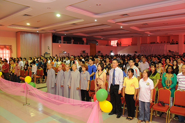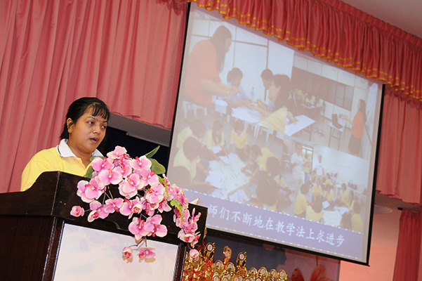 首先由幼儿园园长Sandhi老师常务报告。接着是檀香寺女众监院释真信法师致词。法师说幼儿园于1991年成立,在这漫长的22年来幼儿园不断求进步,为创造全面发展有充满激励性的儿童教育中心而努力。