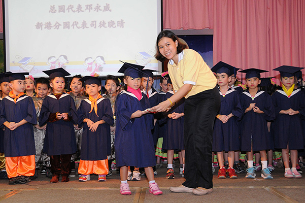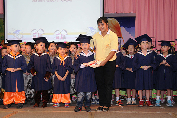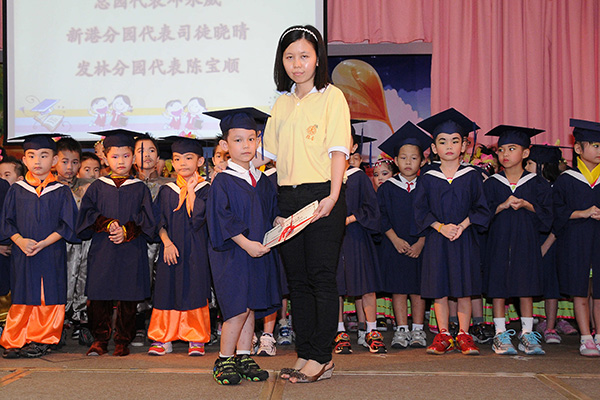 颁奖仪式后,幼儿园园长及各分园主任分别颁发毕业证书给总园、新港分园及发林分园代表。接着是毕业生代表黄崇恩、叶素仪与曾堉翔分别以国、华、英三语致词。之后,毕业生高唱毕业歌,为幼儿园旅程画下句点。