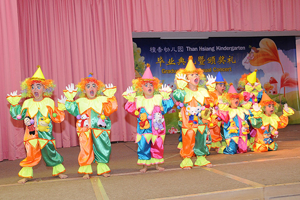 余兴节目内容丰富、精彩纷呈。当天共有12个余兴节目,包括了小朋友们的传统舞蹈、让人热血沸腾的印度舞蹈、活泼可爱的小丑、俏丽的西方爵士舞、安亲班小朋友所呈现的诗歌朗诵等。孩子们自信大方的表演,博得了大家的阵阵掌声。