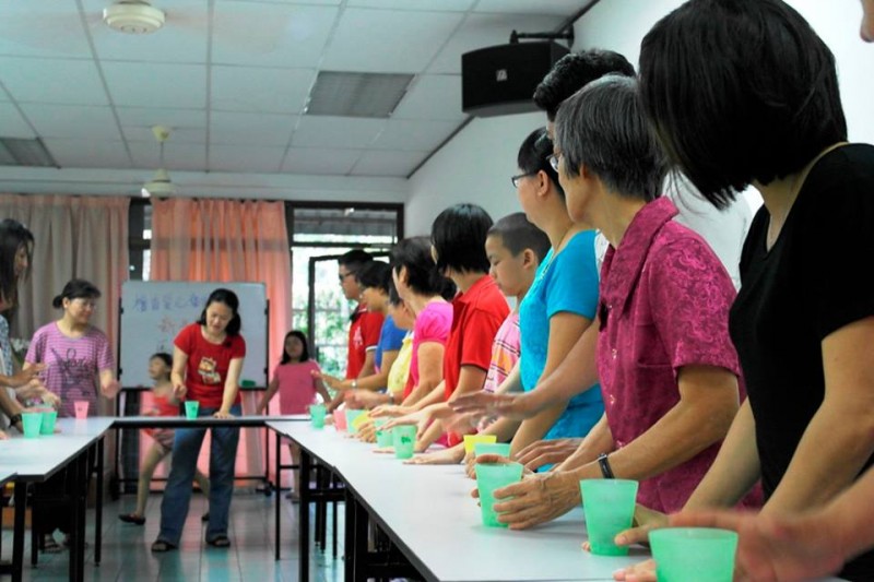 节目的高潮是由全体义工们一起表演“杯子舞”,虽然义工们之前只经过很短时间的排练,但是却有不错的演出!尤其是义工们的家属也很乐意配合练习演出,所以整个场面气氛都很热闹。