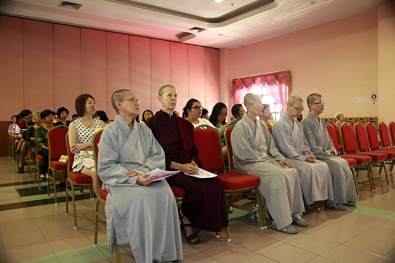 最后,大会恭请上真下如法师带领大众回向。法师带领大众念诵佛号及回向文后,也将此次善业功德回向马航MH 370所有机组人员与乘客,愿他们都能平安、早日归来。