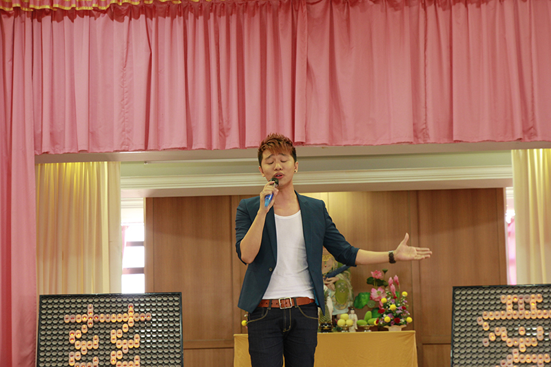 上午十一点十分,会庆进入节目表演环节。首先是由槟城慧音社华乐团四人小组为大家演奏三首曲子,之后为陈允涵居士的独唱(‘我的歌声里’及‘海阔天空’)、陈汉良魔术师的魔术表演,及王郑浚仁演唱的‘最浪漫的事’、‘掌声响起’及‘Rolling in the Deep’。