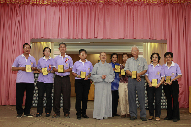 致词环节过后,大会恭请上真下信法师颁发慈爱福利功德会感谢状于中医师及义务中医师们。上真下如法师也受邀颁发感谢状于表演嘉宾。随后,大会恭请法师们带领大众献灯,祈愿一切有情众生远离身体上的痛苦,无精神上的痛苦。