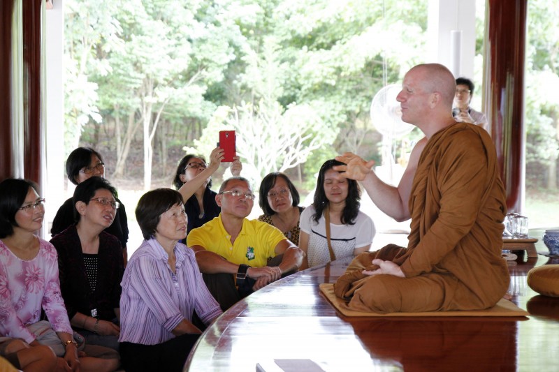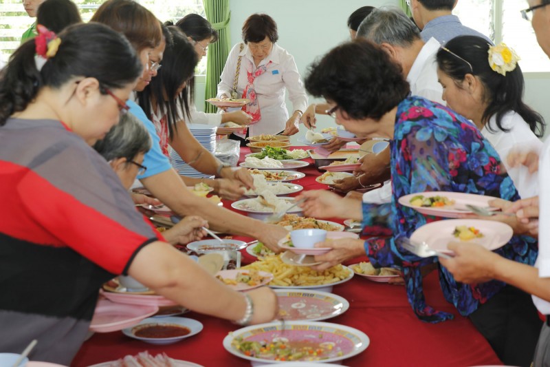 泰国时间十一时(比大马时间晚一小时),宾主齐吃午餐。我在楼下的小室用餐,刚好与该校董事们、从槟城远道而来的贵宾、教授讲师、大马与中国多位法师,同在一室。余者则在楼上用餐。