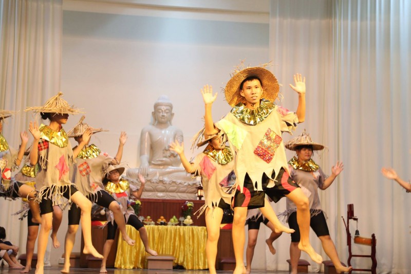 接着出场的是吉中佛教会为大家带来一支别出心载的舞蹈——“田园一梦”。此舞蹈演绎一个快乐农夫到田园与稻草人换衣裳的奇遇记,谁知到头来只是农夫的黄粱一梦。人生不也如此吗?一生人或轰烈或平凡、或贫贱或富贵、或开心或哀伤,待百年归老之际,也是空空归去。曾经的一切,只是梦一场。