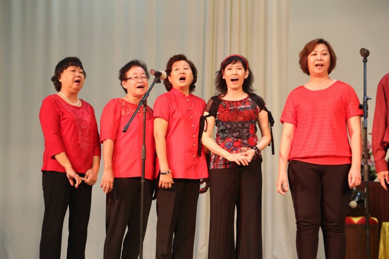 开示之后,进入一连串的余兴节目。先有菩提校友会合唱团为大家献上一首曲调轻快的贺岁歌曲“新年歌儿大家唱”;檀香资深的法音合唱团则为众善信献唱“春花齐放”。紧接着有2014年全球闽南语歌曲创作演唱大赛第六名郑综宪为众佛友带来柔美动听的“最浪漫的事”及激起年轻人追梦的“我的未来不是梦”。