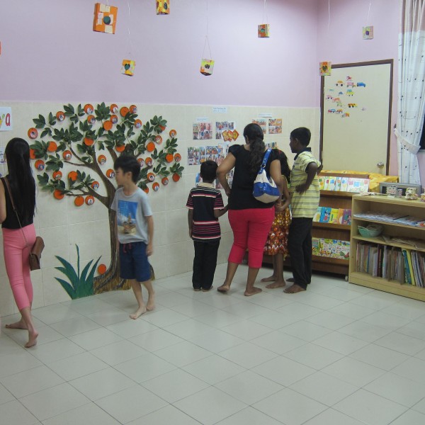 当天天气晴朗,是庆祝中秋佳节的好日子。中秋团圆共修会由傍晚5时正开始的檀香幼儿园开放日掀开序幕。到来的家长除了参观幼儿园课室里孩子们的作品外,还可观赏环保灯笼制作比赛的参赛作品。只见铁架四面挂着各式各样创意无限的灯笼,令人看了赏心悦目,赞叹连连。
