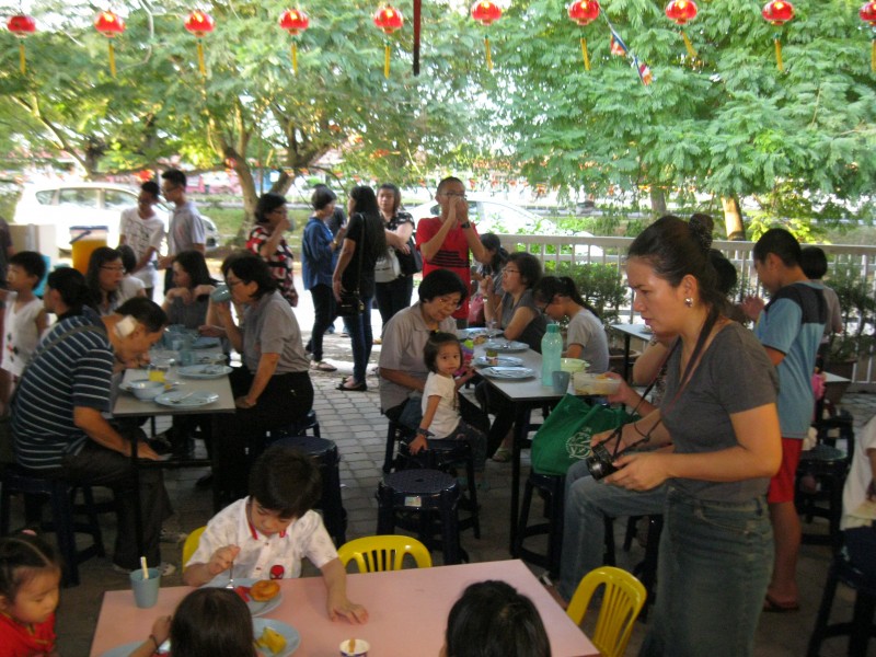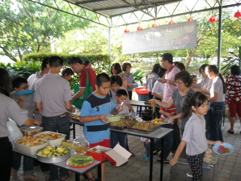 过后,来宾们就开始品尝香积膳食组的菩萨们和部分出席者所准备的各种素食。大家一面聆听与中秋节有关的应景歌曲,一面大快朵颐,欢乐气氛处处飘扬。