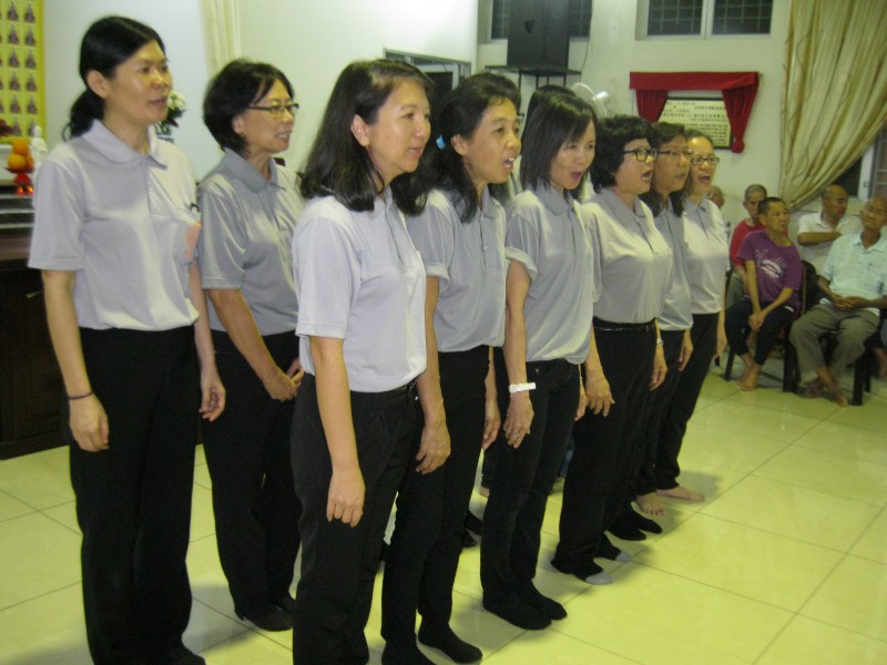 之后,就到了檀香各家族的“表演”时段。檀香晚晴苑的冯江子老菩萨独唱《马车夫之恋》打头阵,然后檀香幼儿园的小朋友为大家带来舞蹈《感到幸福你就拍拍手》,以祝愿大家幸福每一天;《月圆花好》这首充满中秋节气氛的歌曲则由檀香晚晴苑的许和开老菩萨呈献;接下来,檀香周五佛学班的学生以手语的形式呈献《我的名字叫勇敢》,呼吁大家当挫折来临时应该坚强勇敢的面对;于今年3月26日成立的佛曲班在声乐老师杨木钦居士的指挥下献唱两首佛曲:《竹园之歌》和《清凉》,祈愿通过佛曲让佛法的“甘露滋润心苗”,让大家能够“无限忧怀已除”。最后出场的欧勇君小菩萨以独唱的方式把《小幸运》带给大家。