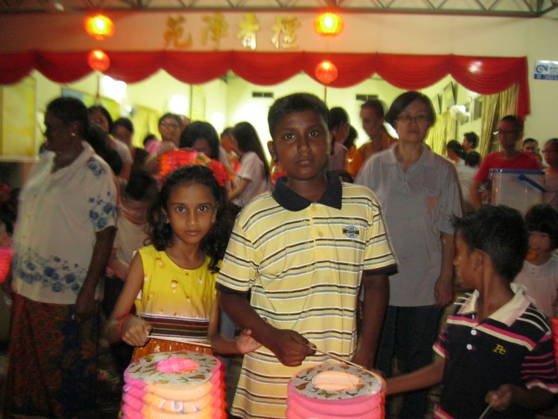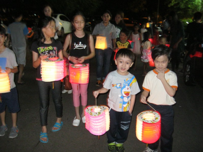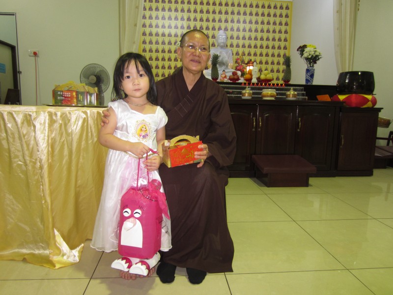 小菩萨庆祝中秋节时最喜欢的节目到了——明珠师姐和碧莱师姐带领大家浩浩荡荡的边唱“佛化中秋歌”边提灯笼。“祝你中秋快乐,阿弥陀佛……”,庆祝中秋节时加入了“法味”,让这个佳节变得更具意义。