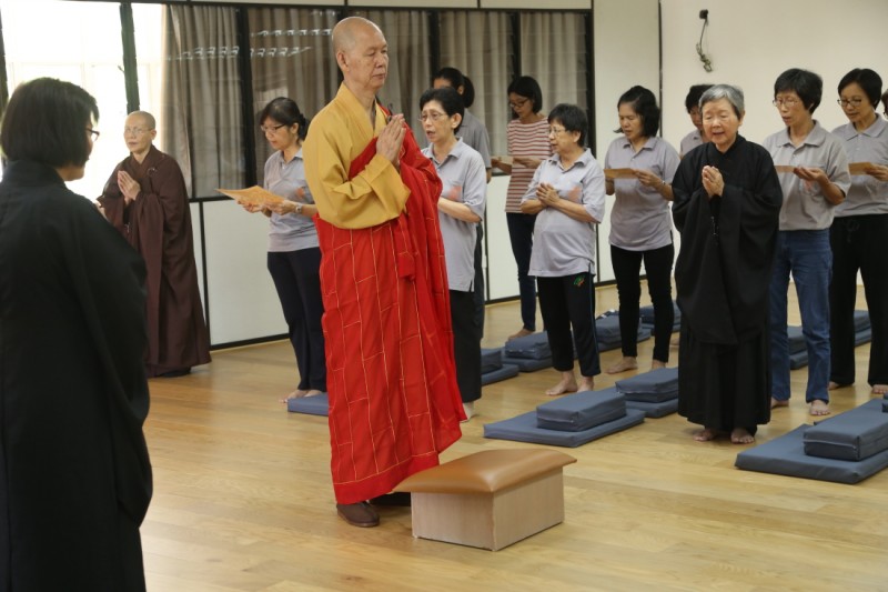 接下来, 师父上人带领大家做晚课。过后, 大家就与师父上人一起享用简单又美味的晚餐。