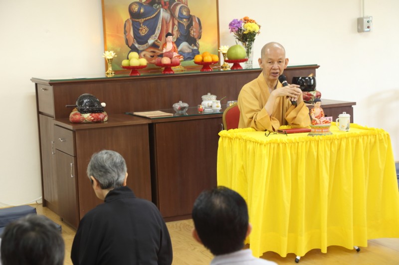 过后, 恭请师父上人为大家开示。 师父说,越南人民多数信奉佛教;而越南佛教受中国佛教和印度文化的影响。越南佛教有它的独特点, 就是非常传统, 信徒们非常虔诚, 进入佛堂时, 他们一定要穿著端庄, 不能穿短裤、短裙。曾经有越南法师到檀香寺来, 看到正在共修的信徒, 有些穿着短裤、短裙, 就感到很奇怪, 为何这里的信徙不必穿著端庄也可以进入寺院呢? 越南佛教是属於汉传, 诵经方式跟传统汉传佛教很相似, 但在诵经时, 信徙们是坐着的。