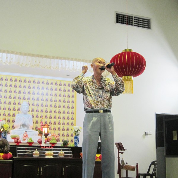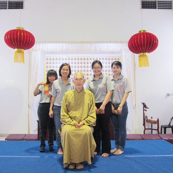 闻法欢喜后,真如法师颁发职员服务奖予在檀香幼儿园服务10年的吴宝琴老师、服务8年的邱巧叶老师、服务6年的何泋锦老师以及服务5年的陈安仪老师。得奖者与师父合照后,余兴节目开始了。冯江子老菩萨独唱《创造》打头阵, 接着檀香幼儿园的小朋友为大家呈献舞蹈《炮竹一声大地春》,借此祝贺大家新年快乐,万事如意。檀香安亲班的学生们为大家呈献手语《人人有转机》后,其中的王祺越同学就为大家呈献武术表演。接下来,檀香佛曲班学员带来三首歌曲——《妙哉菩提叶》、《恭喜恭喜》和《贺新年》后,其中的学员黎美珍居士为大家献唱《春风吻上我的脸》和《快皈投佛陀座下》,声乐老师杨木钦居士也清唱佛曲《祈求》。最后,是苏丹阿都哈林师范学院学员的压轴表演,只见准教师们随着串烧新年歌曲表演一连串的手语,再由受小菩萨欢迎的“金鸡” 随着轻快的旋律派发红包给师父和老菩萨,让欢乐气氛洋溢整个佛殿。
