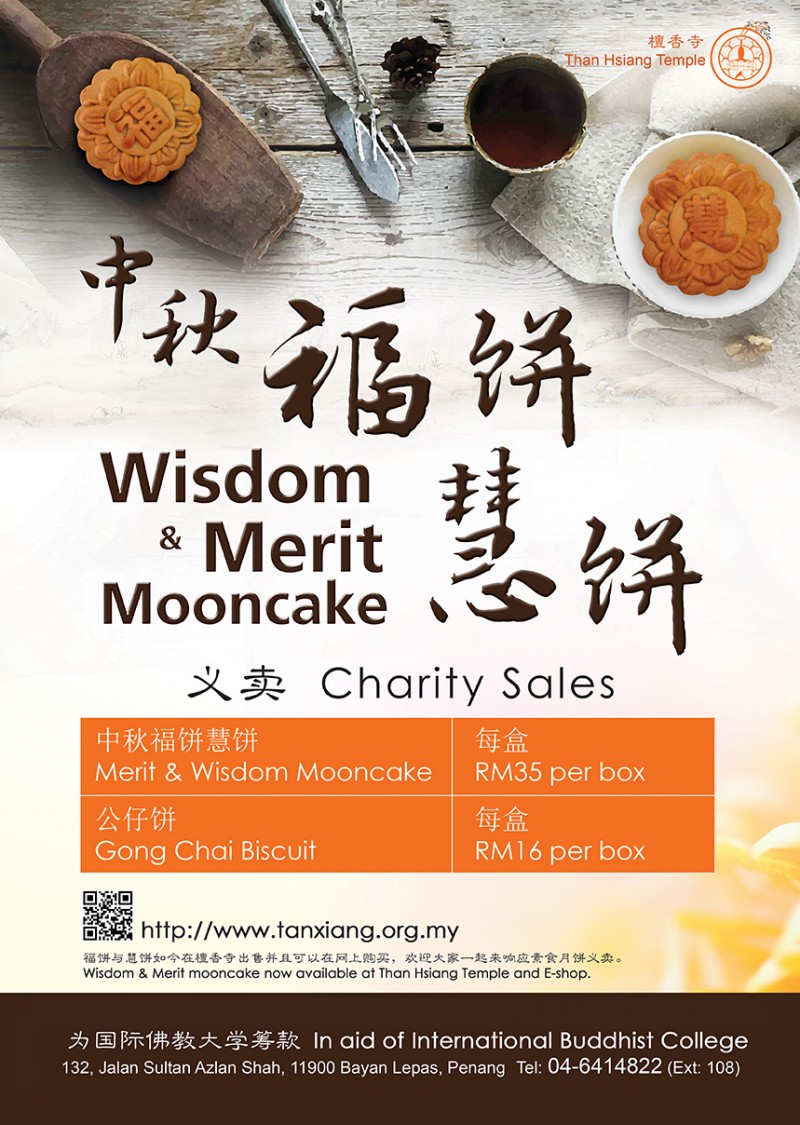 Submitted by Ah Jin on Wed, 30/08/2017 - 11:35 Body: 为了配合中秋佳节的来临,檀香寺已经开始义卖公仔饼和 "海外天" 提供的中秋素食月饼,欢迎各界人士踊跃护持,其收入将捐助国际佛教大学基金。 另外,大家也可通过网上订购的方式订购 http://tanxiang.org.my/ 宣传 Log in to post comments5933 reads