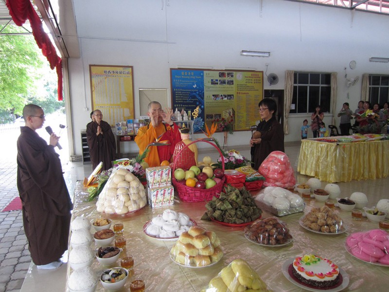 〈孝亲法会〉的前行工作,如印制海报和传单、分发超度卡和点灯卡等在两个多月前就开始陆陆续续进行了。清洗碗碟、购买水果和食材、布置场地、准备电子数码排位、设置音响等也在法会数天前如火如荼地展开。感恩鲁乃佛友发心制作糕点,也感谢佩金师姐带领多位香积菩萨前来净苑帮忙准备供品和膳食。