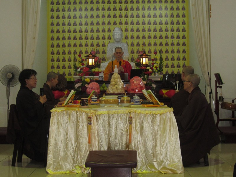 真如法师开示完毕后,大众出班享用茶点才继续共诵“第二系念”和“第三系念”。此时,电视屏幕上出现熊熊烈火的照耀,以及西方三圣前来接引的影像,大众祈求三宝加被〈净土坛〉的先人或冤亲债主皆能往生西方极乐净土,而〈延生坛〉的祈福者都能增福延寿,并祝福参与法会的信众们福寿康宁。孝亲法会在做完晚课后画下完美的句点。大众欢喜地享用晚餐和进行善后工作。