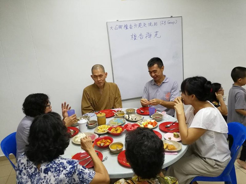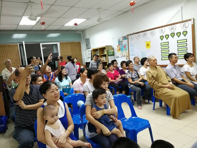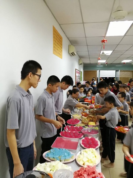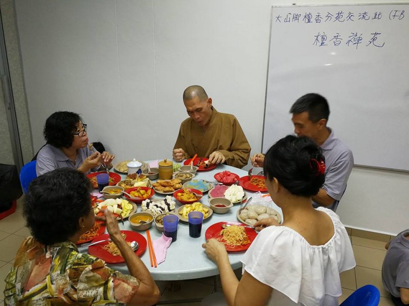 游行回来后,便是禅苑爱心家族精心准备的联谊中秋之宴。大众在真如法师带领三称佛号后,便开始有序地享用美食,联系情谊。约莫9时,大众陆续离开。禅苑中秋团圆共修会至此也圆满结束。