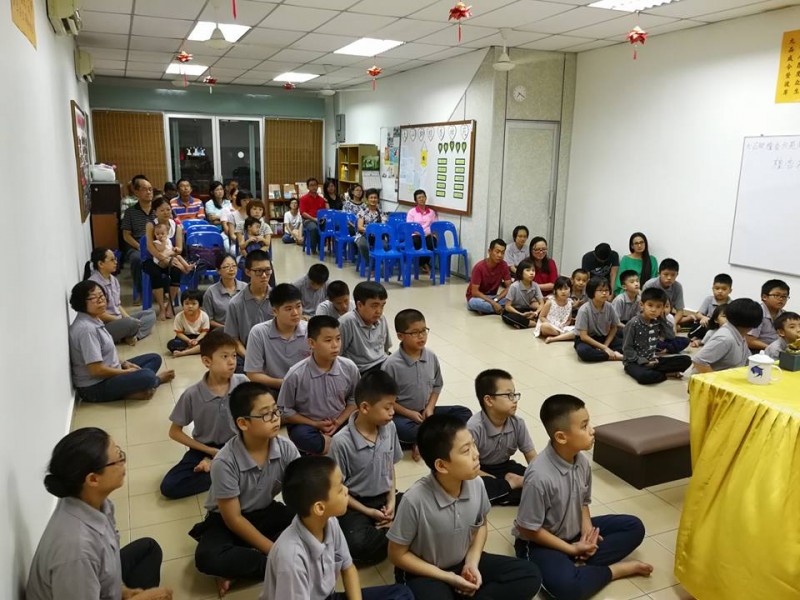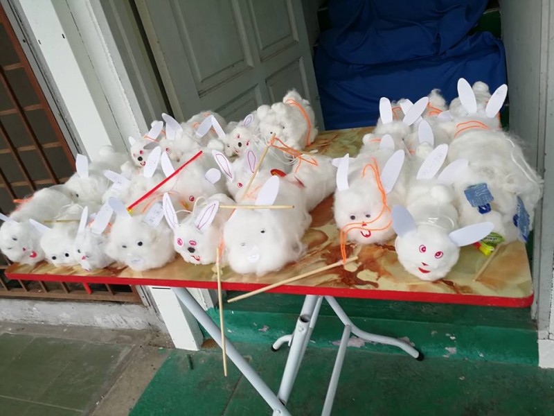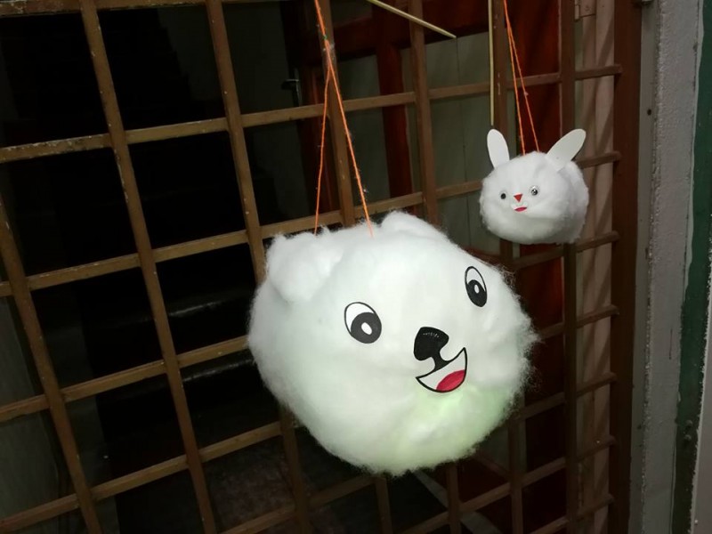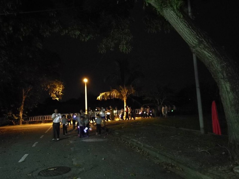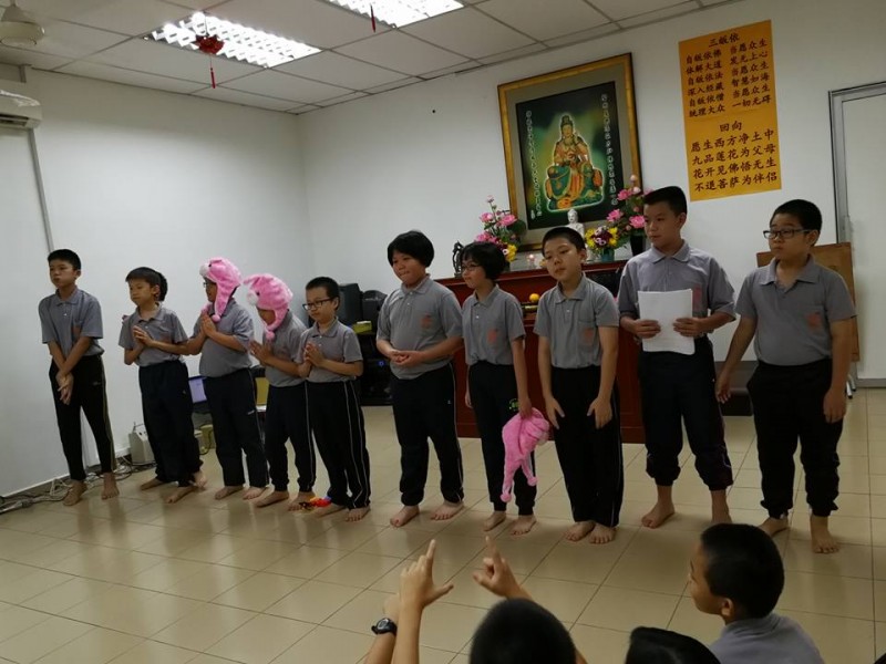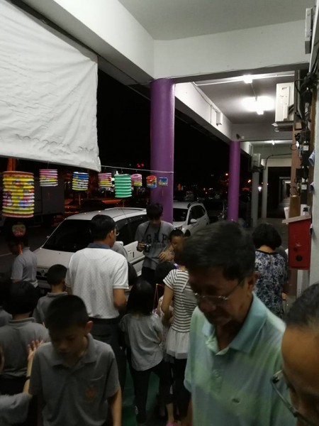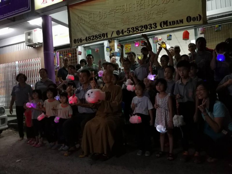 法师开示完毕后就是余兴节目时段。今年的节目只有两个:小学低年级的手语《感谢》及小学高年级的话剧《贪嗔痴》。接着就是小孩子们期待的提灯笼游行环节。今年的棉花兔子灯笼是由湫竣老师教导制作下完成的。在真如法师及钟怀主席的带领、爱心爸爸及哥哥们的前后护卫下,大队浩浩荡荡从禅苑出发,照亮幽暗寂静的小径。