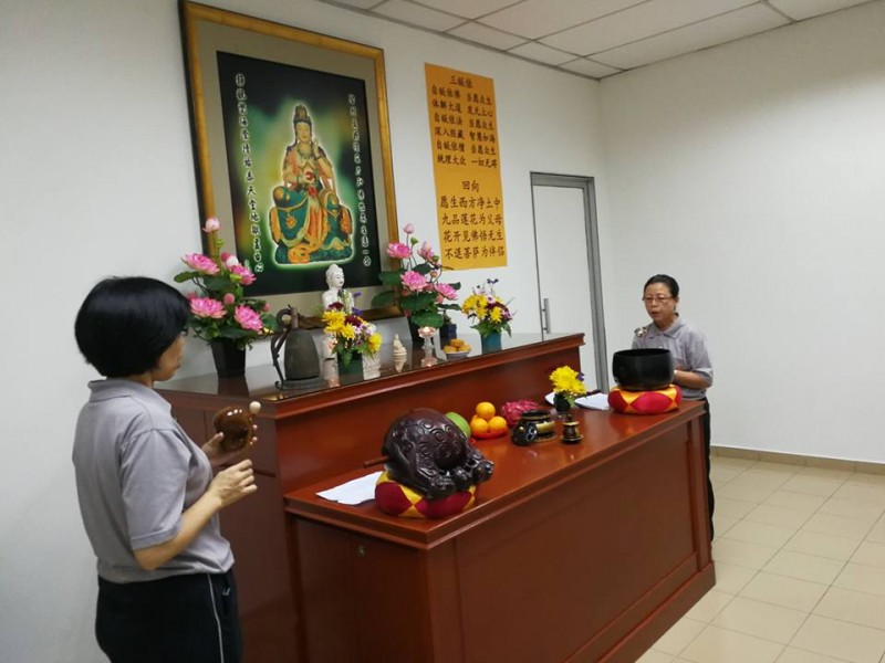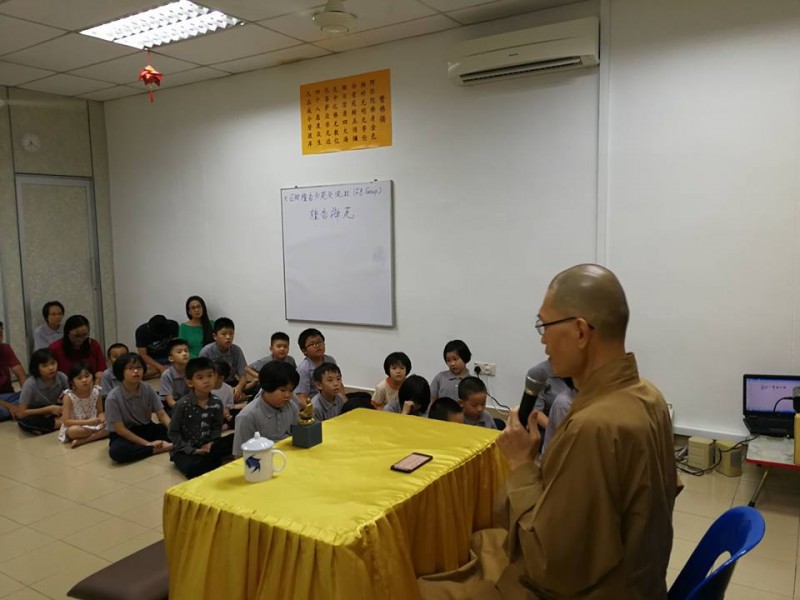 傍晚7时正,檀香寺监院真如法师抵达后,欣树及丽盈两位居士便带领大众念佛共修。约十五分钟之后,坤艾司仪便礼请法师为大众慈悲开示。
