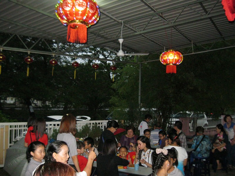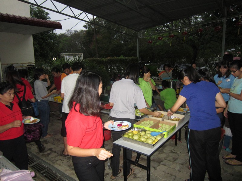 傍晚6时半左右,佛友们开始陆续冒雨抵达净苑,有些还带来了自制的美食,一些小菩萨则兴奋地提着灯笼到来。大殿外已排放着各式美味食物,感谢劳苦功高的义工们,也感恩佛友们的用心,亲自准备了美食与大众分享。共修会开始前,所有来宾有秩序地在大殿外享用茶点。