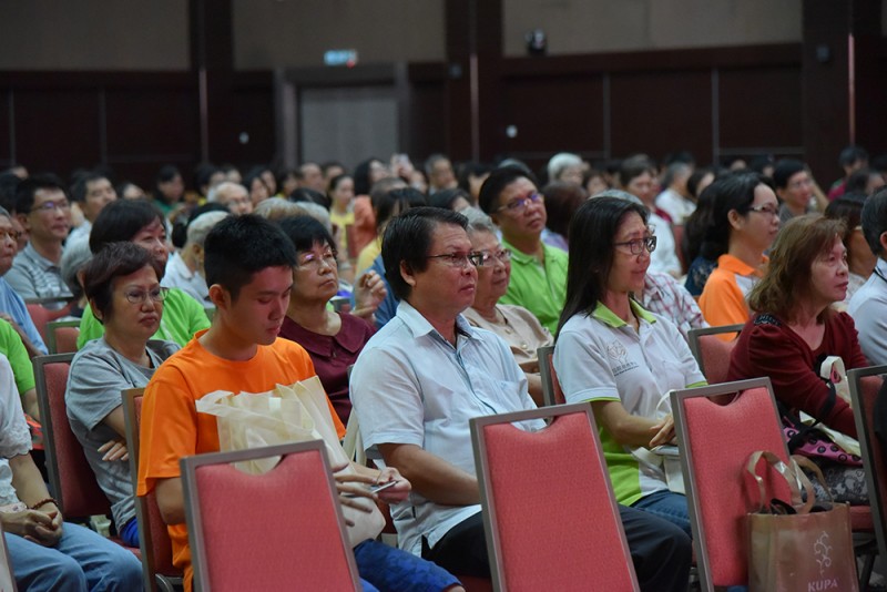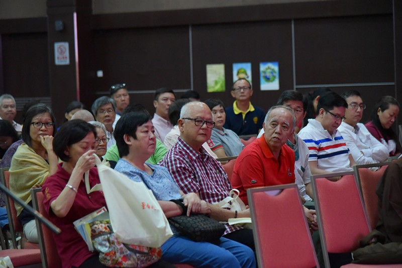 约有逾200名群众出席当天早上9时至中午12时举行的分享会。会上台下观众也向法师作出提问。