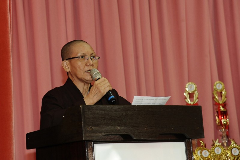在大家起立唱国歌及合掌唱三宝歌后,檀香寺女众监院真信法师代表檀香寺住持唯悟法师开示。法师说,檀香幼儿园除了提供正规的课程,更注重灌输孩子们正确的人生道德观,融入《福智十善法》教学启发孩子们的善心及良好的行为,希望以《福智十善法》价值观的落实,能够栽培孩子们成为一名知恩、报恩、孝顺父母、尊师重道、亲近善友的好孩子。