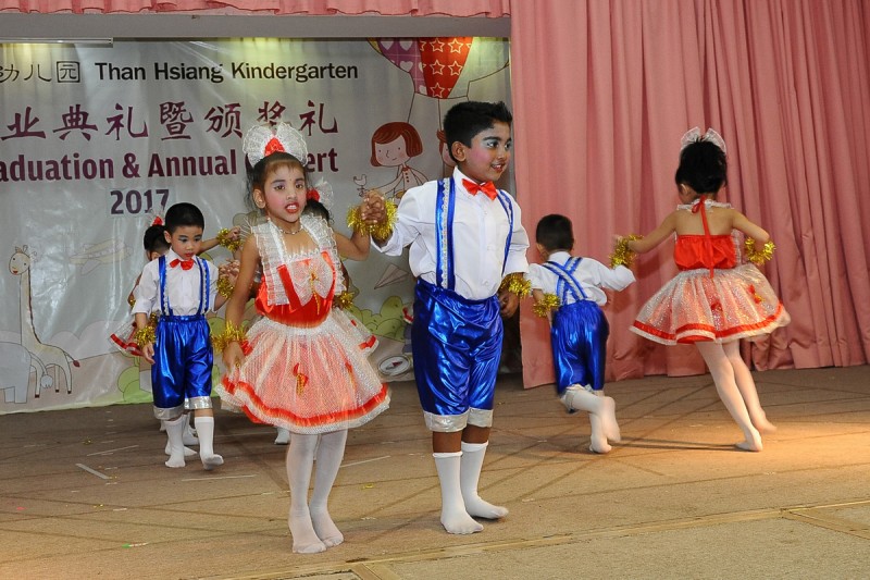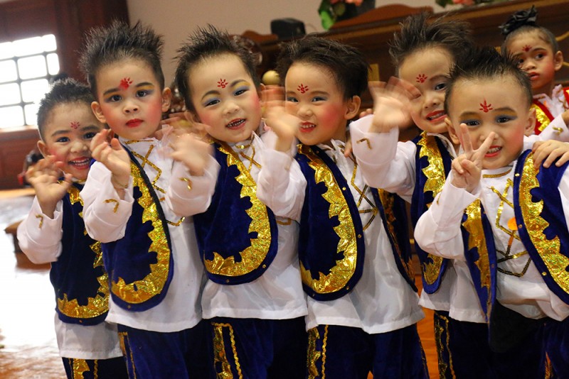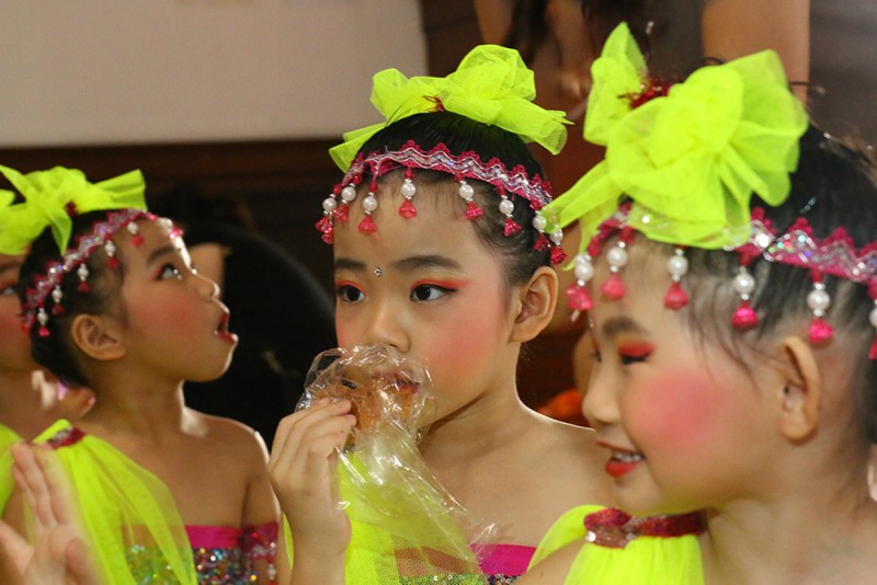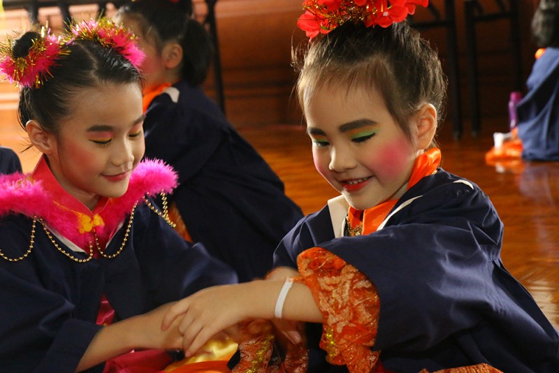 会上总园及两个分园的学生分别呈献丰富多彩的舞台演出,总园呈献的演出包括悉达多、坐火车、桃花朵朵开、Kids Dance Beautiful Life、Indian Dance及庆新年;新港分园呈献Macarena及Walla Walla Bing Bang;发林分园的呈献演出包括我真的很不错、Ikan Kekek及功夫瑜珈。小菩萨们的天真落力演出令场面气氛持续升温,饱了大家的眼福。