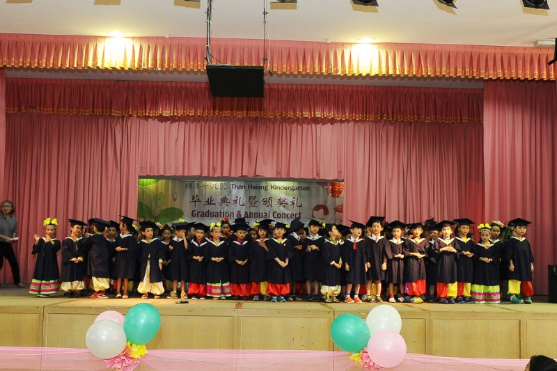 (槟城檀香11日讯)来自槟城檀香幼儿园总园、新港分园及亚依淡发林分园的130名毕业生在完成幼儿园教育后於11月11日,周六,参加檀香幼儿园第26届毕业典礼暨颁奖礼,高高兴兴戴上“四方帽”,高歌毕业,感恩幼儿园师长们的一路陪伴成长。