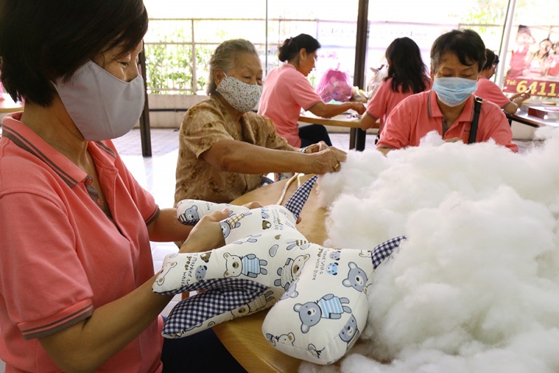 (槟城檀香寺21日 讯)这些爱心菩萨多为家庭主妇或退休妇女,包括20多岁的妙龄女郎至80岁的乐龄阿婆。她们每周二,从上午10时至下午2时,将宝贵的四个小时投放在峇央峇汝檀香寺晚睛苑手工艺中心,同心合力以柔软手工鏠制各类手工艺成品如立体童玩、枕头和被单等。这些义务完成的产品的义卖所得都捐于檀香福利晚睛苑(老人护理中心),让院内的29名孤老能老有所依,安享晚年。