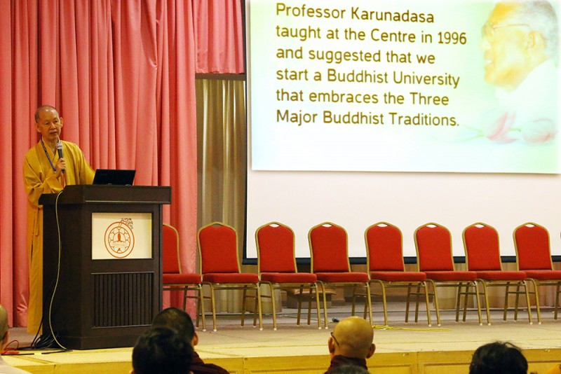 师父说,其中一名在檀香佛学研究中心授课的卡鲁纳达沙教授(Prof Karunadasa)於1996年建议开办传授佛教三大宗派课程的佛教大学。“我们选择在泰国开办佛教大学,一方面因为它是佛教国家,再来是它的地理位置刚好在东南亚的中心。”