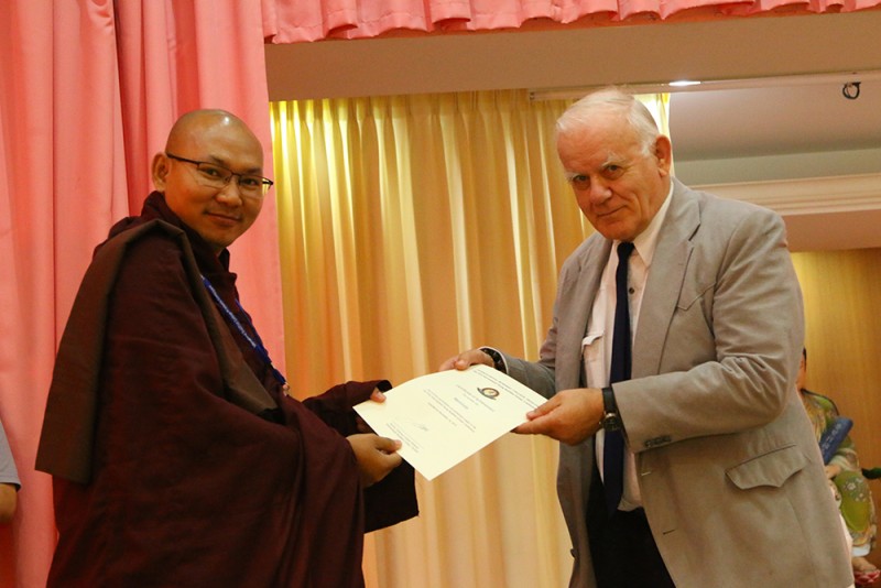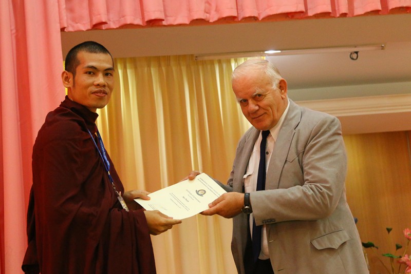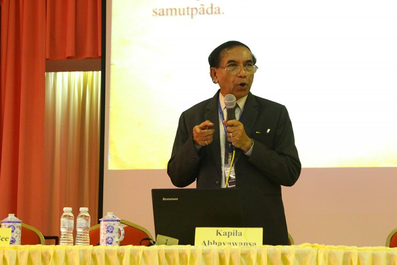 他说,无始以来,无常皆与我们相伴,但不仅在历史上,我们依然认识一些优秀的学者。他们教导我们如何看待事件、经验、包括了我们本身。“今天,我们在这里看到许多有才华的年轻学者。尽管知识追求是无常的,但他们给予我们信心,痛苦也可以被视为相对的。无论如何,阿毗达摩教导我们可以通过积累智力和道德品质来启发我们通往阿罗汉道路的研究。这是一条通向洞察途径的预备途径的开始。其他的预备运作是关于身体的不净和对对呼吸保持正念专注的静坐。然后跟随洞察途径,开始洞察苦谛的第一个方面。”