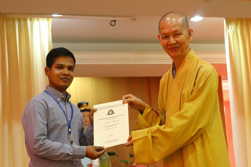 首天英文研讨会的杰出青年学者及发表研究主题分别是:Kazal Barua:Tracing the socio-economic Roots of the Buddhist Concept of Universal Monarch (Cakkavatti-raja);高明元:Samanantara-pratyaya and Samtati:The perspective of Early Sarvastivada Abhidharmikas and Darstantikas; Jaroon Chaibao:Special Features of Thai culture under the Buddhist Influences;Sanjoy Barua Chowdhury:The legacy of Atisa:A reflection on textual,historical and doctrinal developments to enrich Buddha Dhamma from the azimuth of Vikramsila to Modern Era.