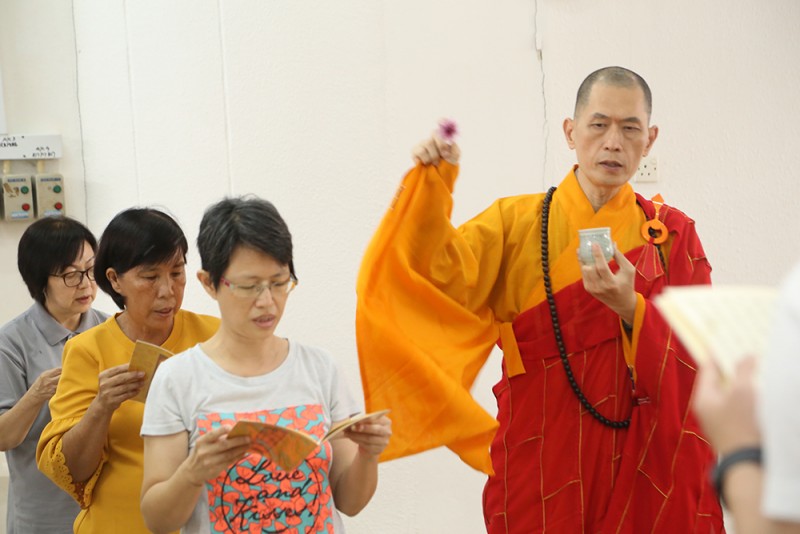 该三皈五戒传授仪式於3月25日在峇六拜檀香寺底楼大悲殿举办,从下午2时至3时半的一句半钟完成。