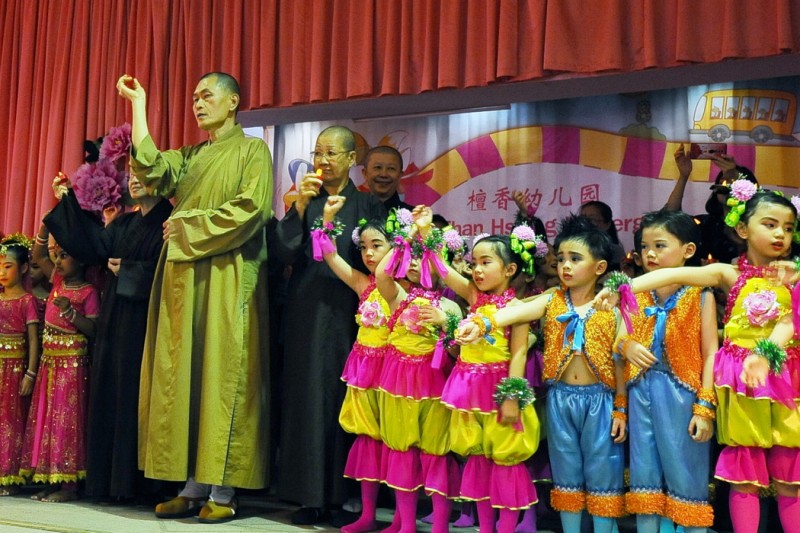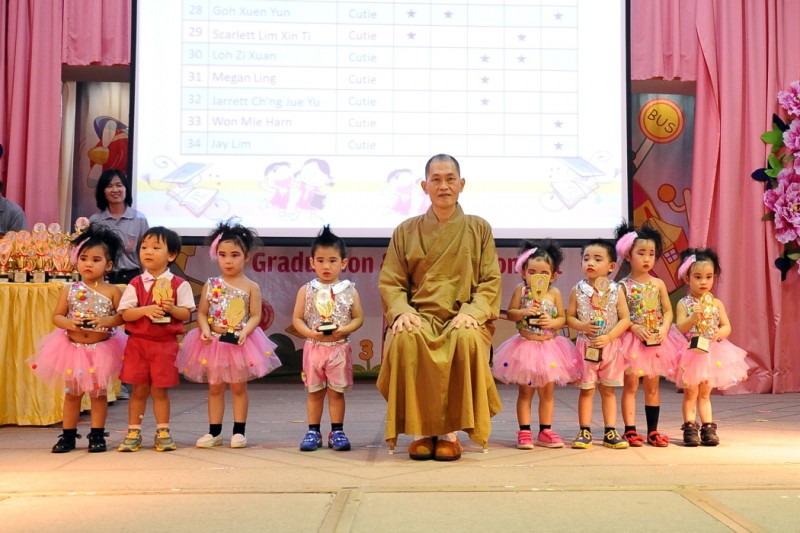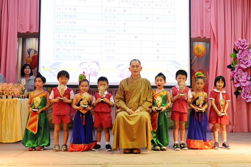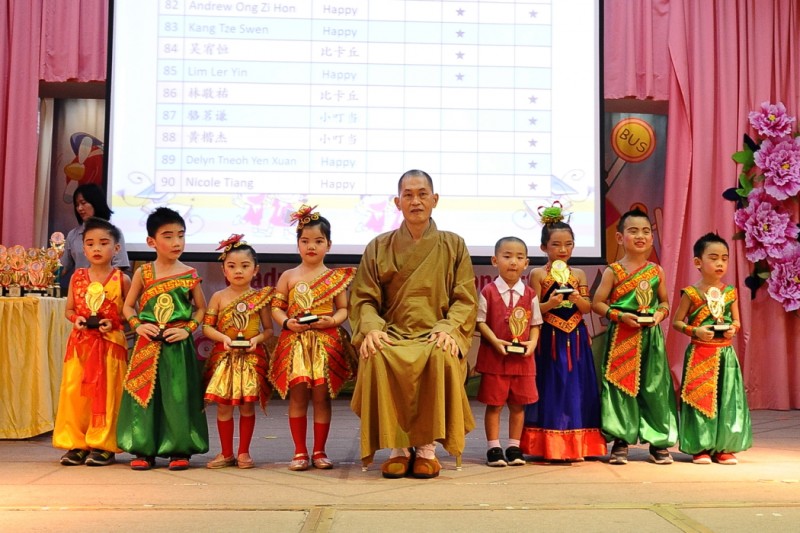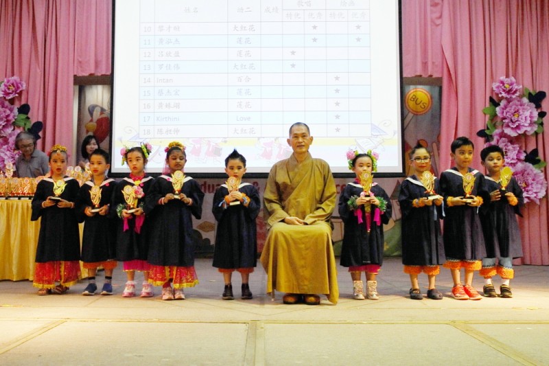 11月17日(星期六)即是檀香幼儿园第27届毕业典礼暨颁奖礼了,师生们一早便到幼儿园为当天的表演做准备。中午时分,家长们亦纷纷入座礼堂内。中午两点整,典礼正式开始。在奏唱国歌及三宝歌之后随即为檀香寺住持上唯下悟法师代表真如法师及幼儿园园长Sandhi老师致词。