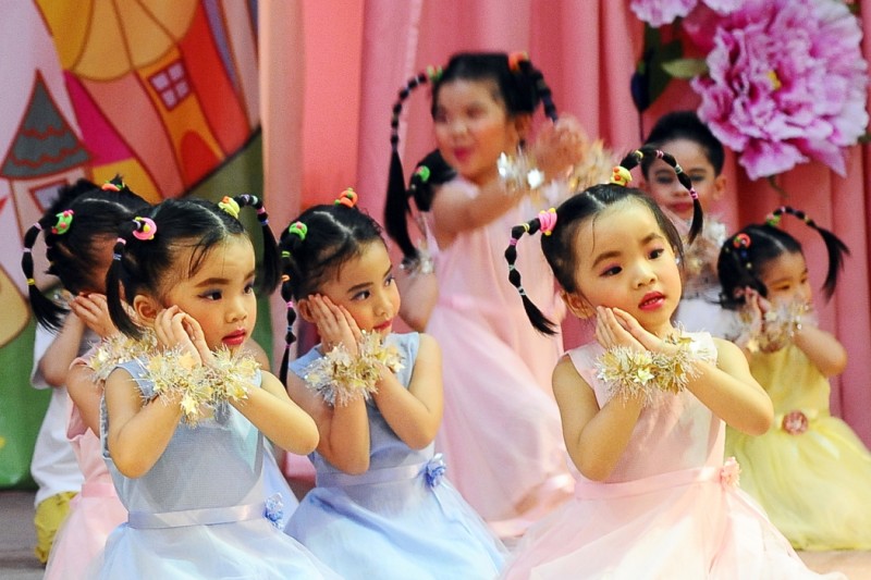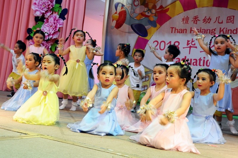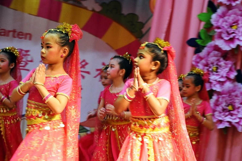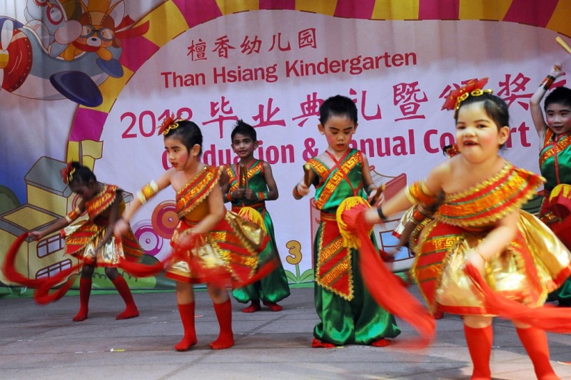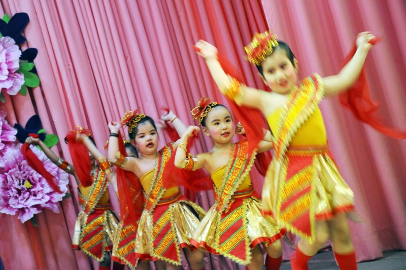 人生每个阶段都是奋斗!只要坚持我们自己的信念,幸福就在我们面前。这是发林分园小朋友所带来的《Fight Song》。其他的表演还包括总园幼二班的印度舞、《冰糖葫芦》,新港分园的马来舞蹈《Siapa Dia》及发林分园的韩国舞曲《阿里郎》。