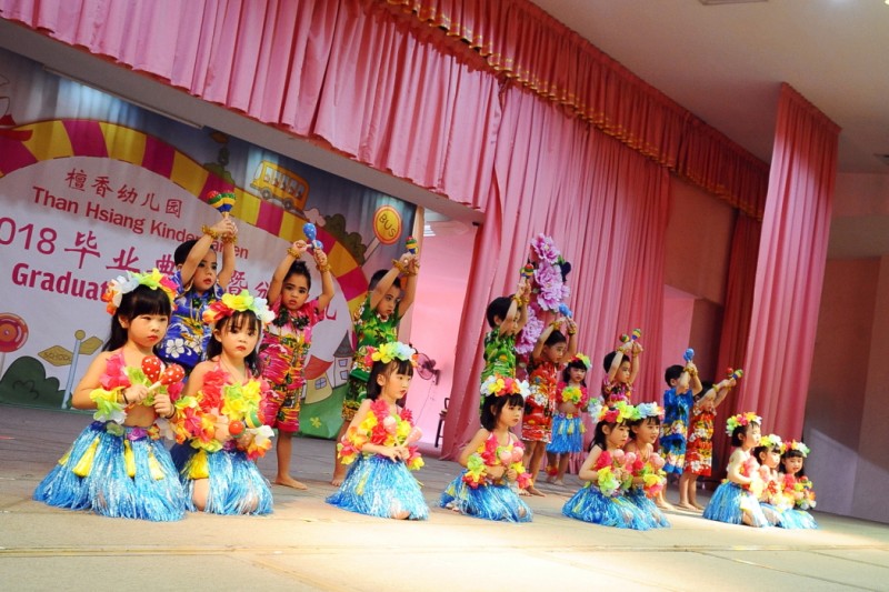 颁奖礼后随即进行毕业仪式。今年共有128位毕业生。待毕业生入列后便由幼儿园园长Teacher Sandhi 颁发毕业证书予总园毕业生代表赵芷萱;新港分园主任施老师颁发毕业证书予其毕业生代表罗苡恩;发林分园主任李老师则颁发毕业证书予其分园毕业生代表陈宝发。毕业生代表黄常焜、胡妍侦及龚靖涵以三语致词后,众毕业生齐声高唱《毕业歌》。紧接下来的环节便是万众期待的余兴节目啦!