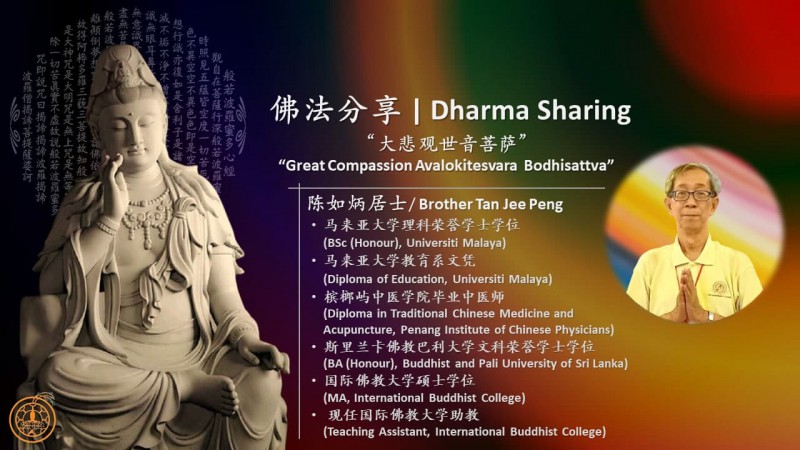 感恩陈居士今晚深入浅出地分享,让我们更了解更亲近观世音菩萨。大家要时时念诵南无观世音菩萨的法号,心心念念,感恩慈悲的观世音菩萨加持,任何困难,都会迎刃而解。希望大家闻法之后心生欢喜,对于大悲观世音菩萨的慈心悲愿心生大信心,让我们一起发大愿心向观世音菩萨学习其广大无边的慈悲与智慧。